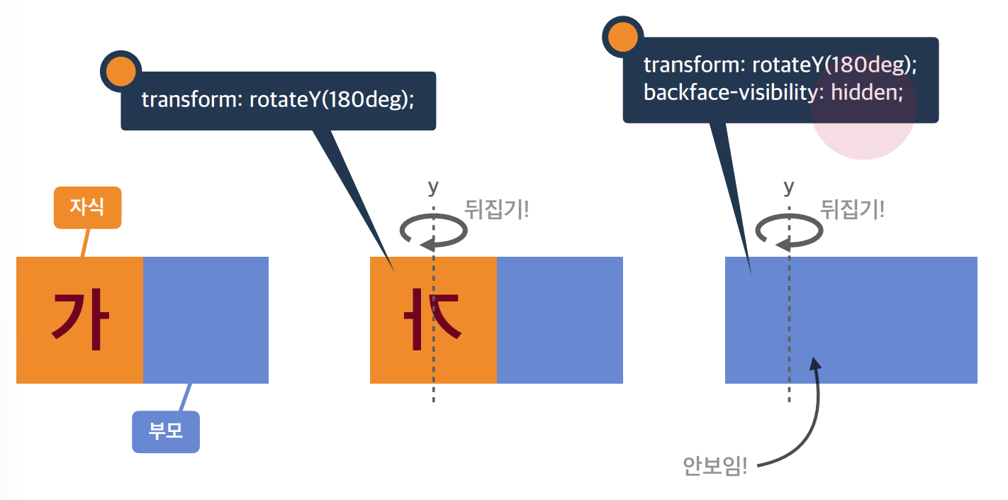 - visible : 뒷면 보임, hidden : 뒷면 숨김