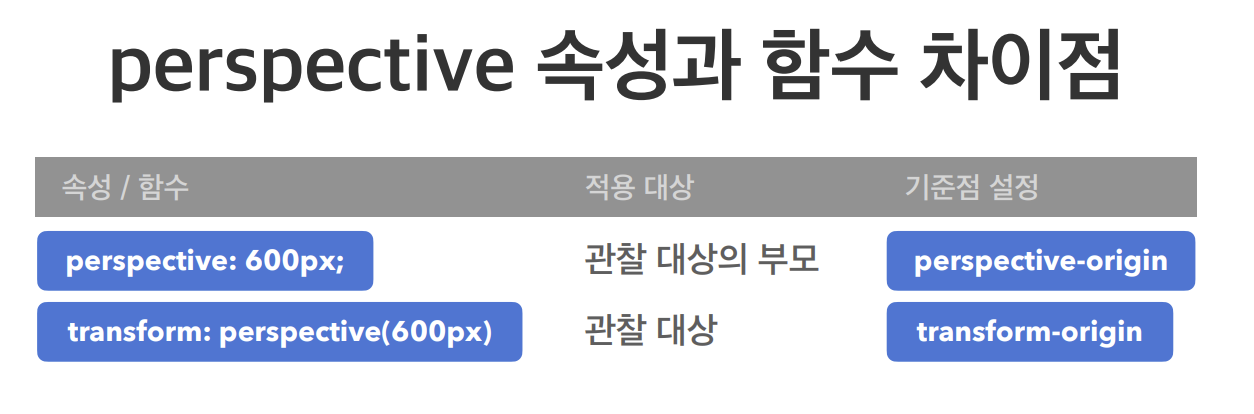 - perspective(n) : 원근법 -> 보이는 관점은 기존 item의 정중앙에서 시작