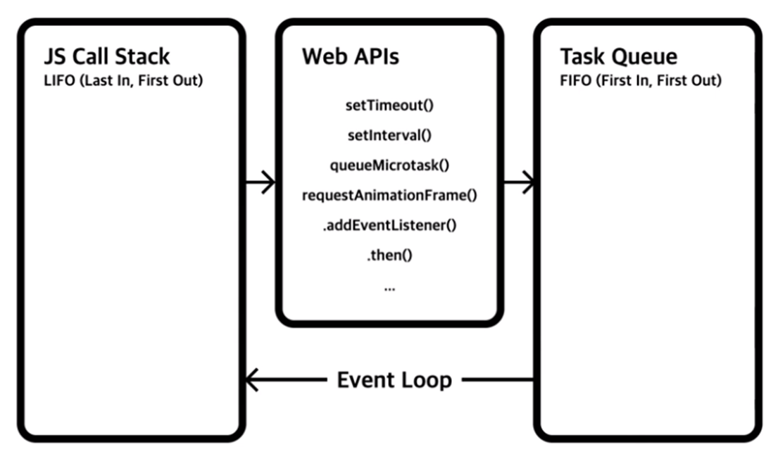 - setTimeout 같은 함수는 js 내부에서 지원하는 기능이 아니기에 브라우저에서 제공하는 web api 도움을 받아서 실행